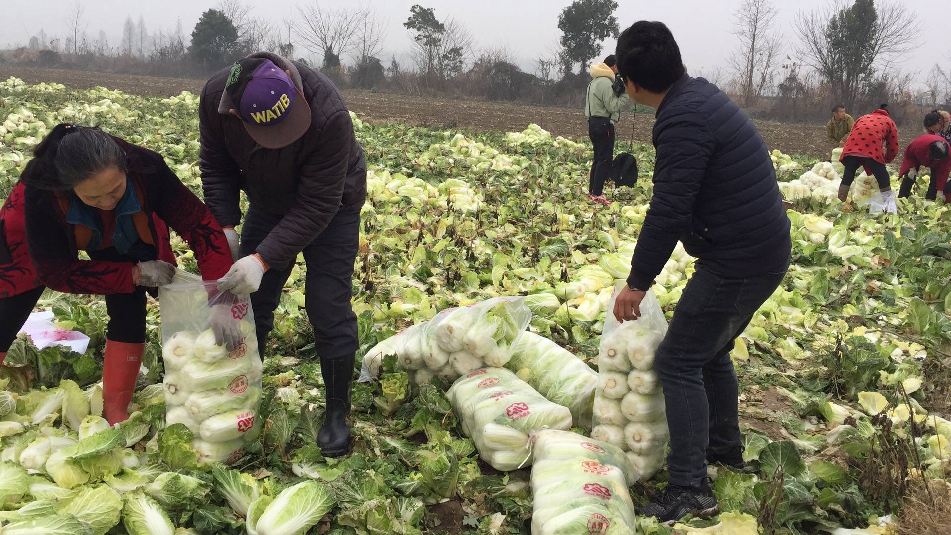 1月7日采購當(dāng)天,雖然天下小雨、氣溫驟降,但菜農(nóng)卻感到無比溫暖。荊選生鮮門店采購部的員工一邊通過現(xiàn)場教學(xué)為大家示范采摘操作,一邊配合菜農(nóng)打包裝袋,忙得不亦樂乎。